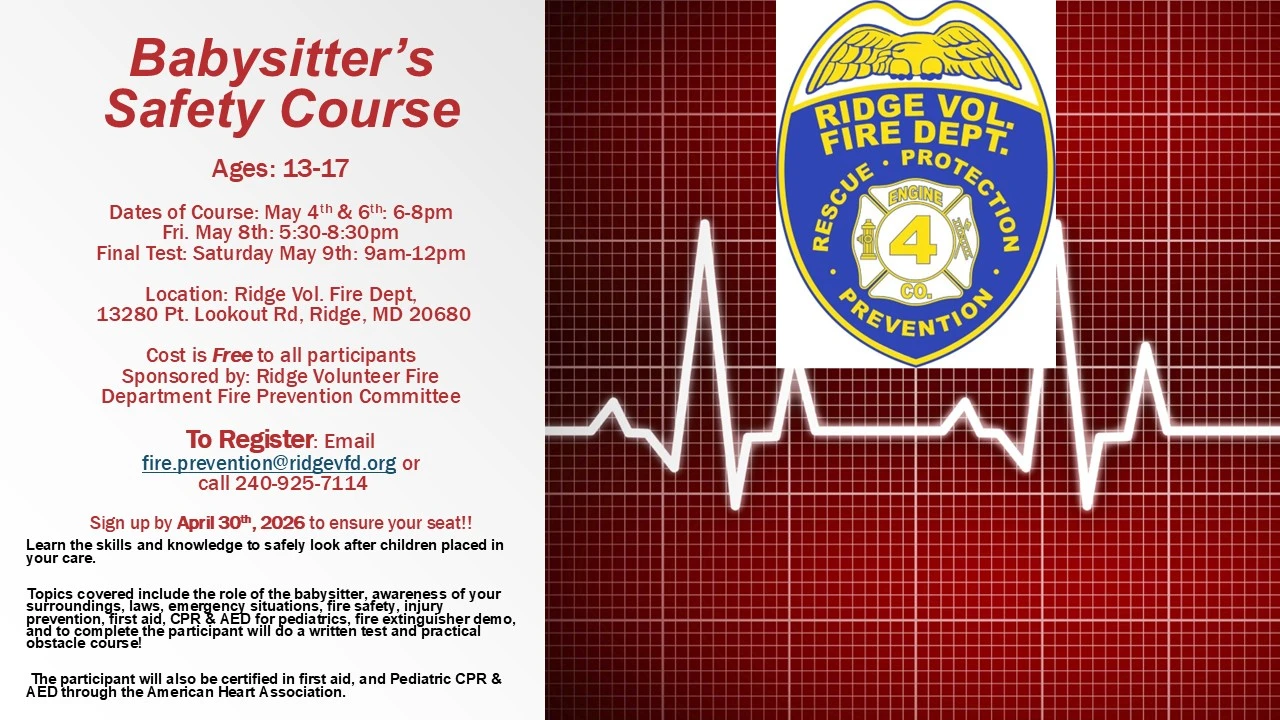 Join the Ridge Volunteer Rescue Squad Association for their all you can eat breakfast on Sunday April 26th from 8:30 am to 11 am. Serving pancakes,scrambled eggs, cream chipped beef, sausage, bacon, home fries, fried apples, coffee, tea, juice. Eat in or carry out! $15 per person.