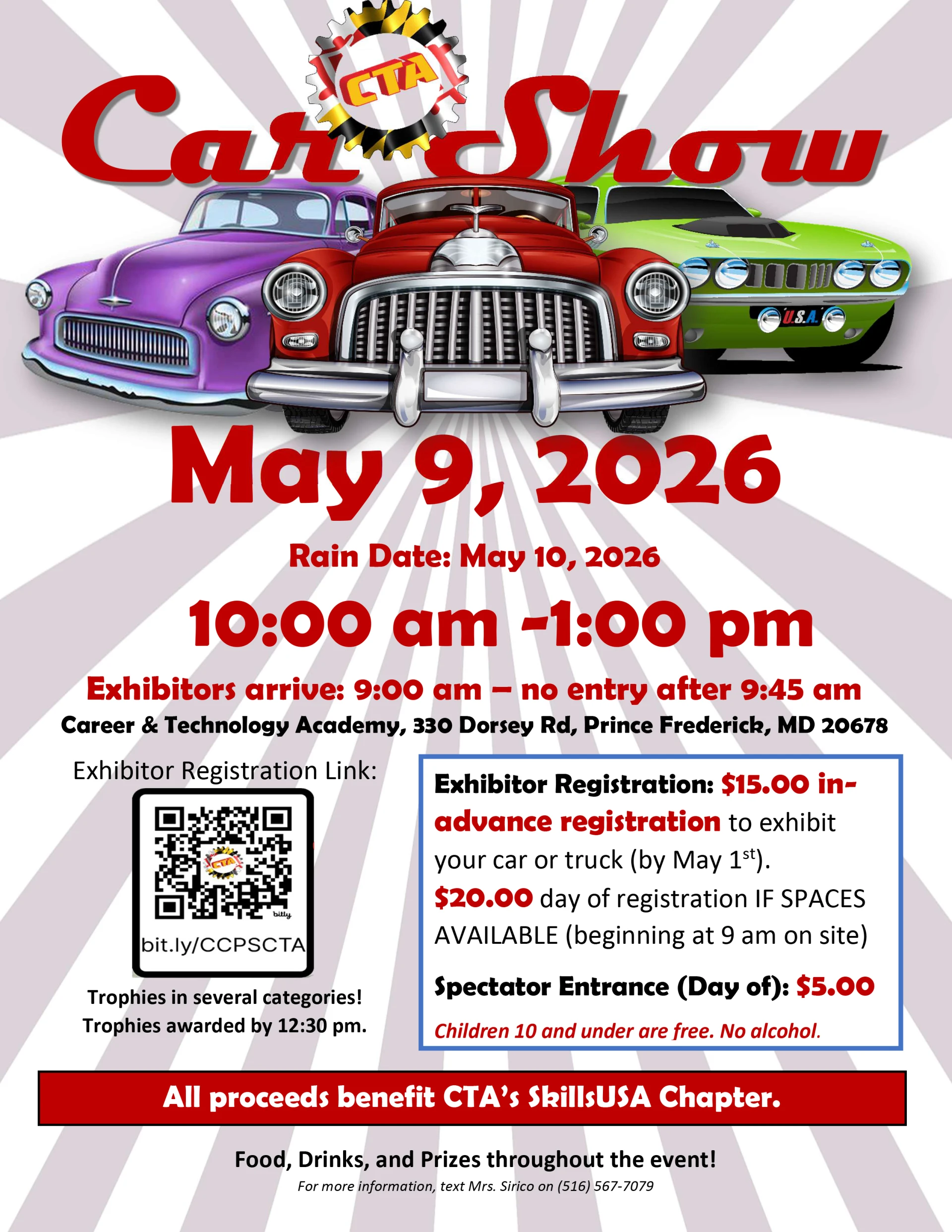 The East Coast Drifters Spring Open Car Show will take place on Sunday May 3rd at the Mechanicsville Moose Lodge (27636 Mechanicsville Road, Mechanicsville, MD 20659) from 8:00 am to 3:00 pm. All cars, trucks & motorcycles welcomed. Top 70 and several other awards. First 100 receive dash plaques. Pre-registration $15 by April 27. $20 at gate. Spectators $5 (under 12 free). Registration cut-off Noon. Information call Chuck 301-751-5602 or Rich 240-538-4266 https://eastcoastdrifters.com (rain date May 17)