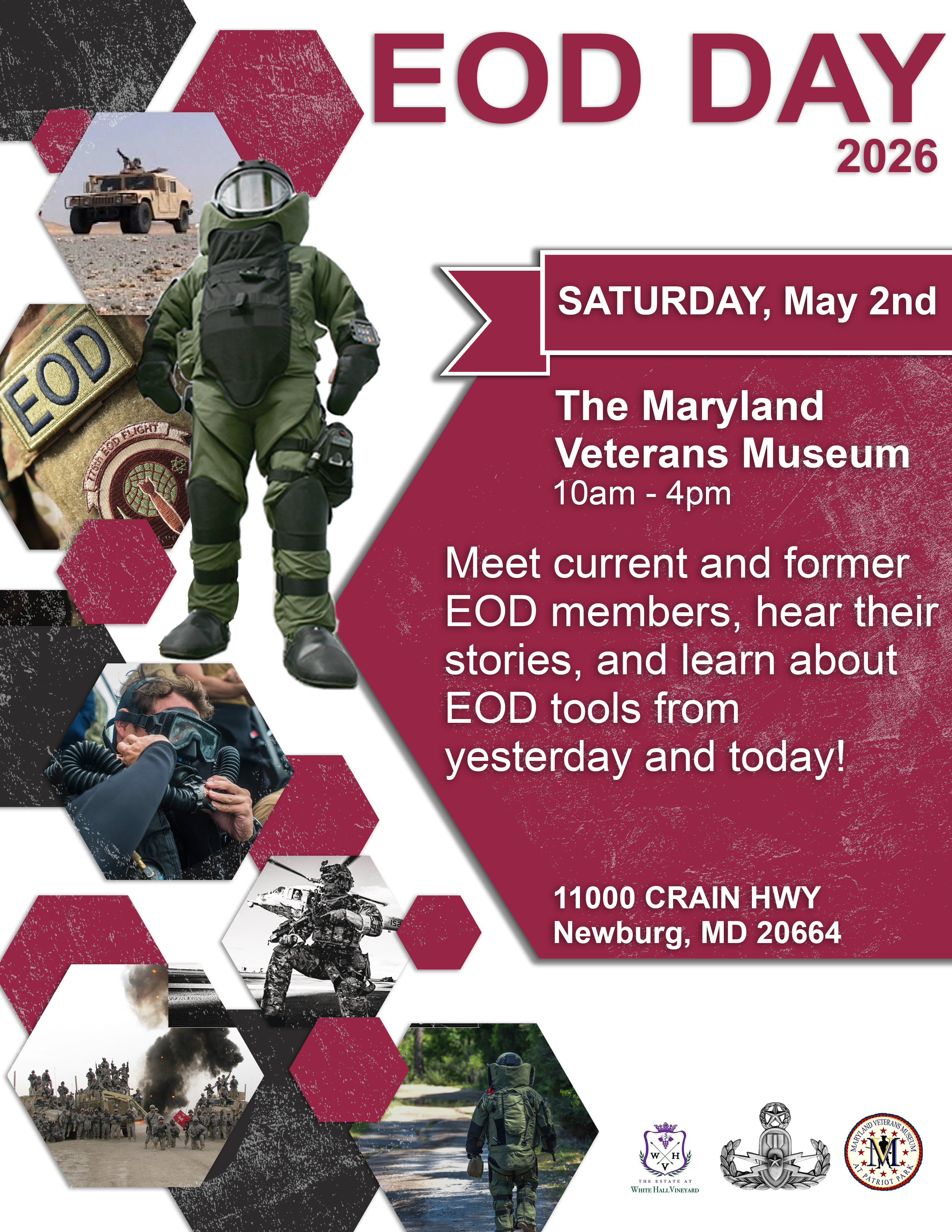 The Maryland Veterans Memorial Museum is privileged to host a variety of events throughout the year to honor Veterans and to reach the local community & beyond. Events include days of recognition, classic car shows, antiques shows, live musical performances, special tours, and numerous living history demonstrations and reenactments. A dedicated all-volunteer staff is always available to answer questions and to offer assistance.11000 Crain Highway Newburg, MD 20664