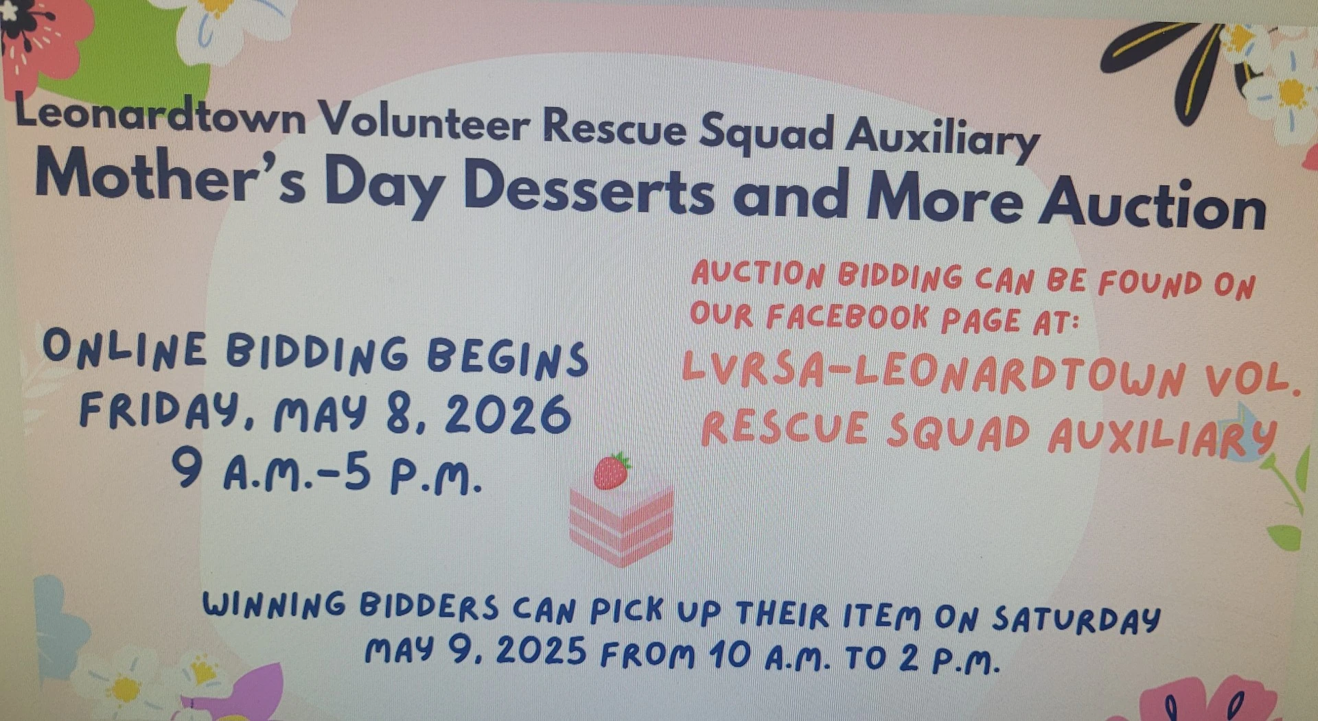 Join the Seventh District Volunteer Fire Department Auxiliary for their Bake and Plant Sale on Sunday May 3rd from 9 am to Noon. The sales will take place at the firehouse on Colton Point Road in Avenue.